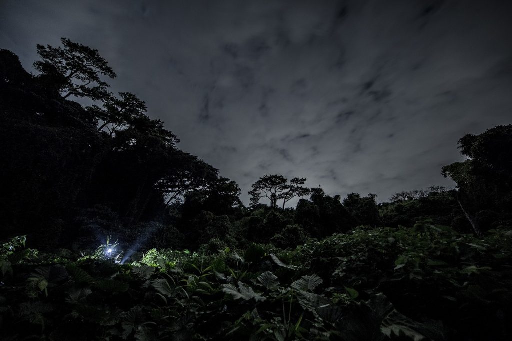A night jungle that shows a completely different look from daytime. In the dark forest, you can rely on your senses and the slightest light of the light that illuminates your feet.